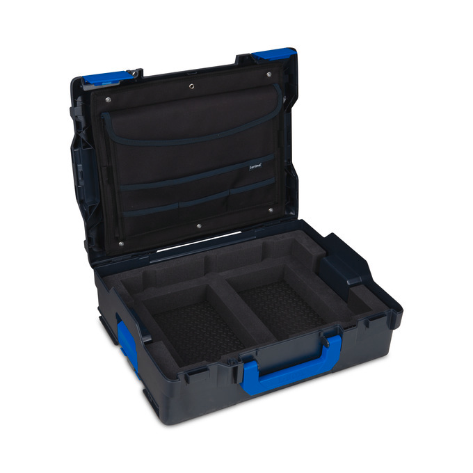 Die Dokumentenkarte wird im Deckel der L-BOXX montiert und ermöglicht die Unterbringung von Büroutensilien wie beispielsweise Taschenrechner, Stiften und Unterlagen bis zu einer Größe von DIN A4. Somit haben sie wichtige Unterlagen immer griffbereit am Einsatzort und können jederzeit Notizen tätigen.