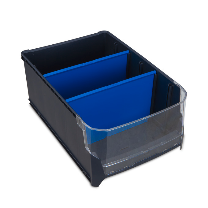 Nutzen Sie die S-BOXX G breit 05-11 in Ihrer Fahrzeugeinrichtung oder in Ihrer Werkstatt als optimalen Ordnungshelfer für Kleinteile wie beispielsweise Fittinge, Schrauben oder Ersatzteile. Das integrierte Sichtfenster an der Vorderseite der S-BOXX sorgt für einen ständigen Überblick über deren Inhalte, so dass Sie frühzeitig erkennen, wann eine Bestellung der Verbrauchsmaterialien ausgelöst werden muss. Die Öffnung an der Oberseite ermöglicht eine einfache und schnelle Entnahme der Boxeninhalte. Eine praktische Ergänzung zur S-BOXX sind die Trennwände, welche eine Unterteilung der BOXX in sechs Abteile ermöglichen. Die Abteile erlauben dem Nutzer verschiedene Verbrauchsmittel in einer S-BOXX unterzubringen, ohne dass diese miteinander vermischt werden. Mittels Auszugsschienen kann jede S-BOXX auf den Fachböden Tiefe 5 (46 cm) der Sortimo Fahrzeugeinrichtungen oder der WorkMo sicher verstaut und auch jederzeit entnommen sowie an den Einsatzort transportiert werden. Zubehör wie Beschriftungsetiketten ermöglichen Ihnen eine gute Übersicht und vereinfachen den Nachbestellungsprozess der Artikel. Beschriften Sie beispielsweise Ihre S-BOXXen mit den Artikelnummern der Inhalte und sparen Sie Zeit bei Ihrer Bestellung.