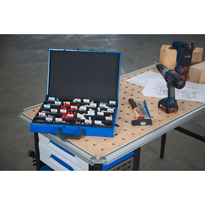 Das Insetboxenset in der Höhe 63 mm bietet Ihnen 24 Unterteilungsmöglichkeiten und ist passend für die T-BOXX G, den Metallkoffer 320 oder die Schubladenhöhe 6 der Sortimo Fahrzeugeinrichtung oder WorkMo. (In Verbindung mit einem Zwischenboden oder einem Trennblechset sind noch weitere Kombinationsmöglichkeiten denkbar) Durch die im Set beigelegten Trennwände lassen sich bis zu 28 Unterteilungsmöglichkeiten mit diesem Set schaffen. Das Insetboxenset eignet sich ideal für die übersichtliche Sortierung von mittlelgroßen C-Materialien.