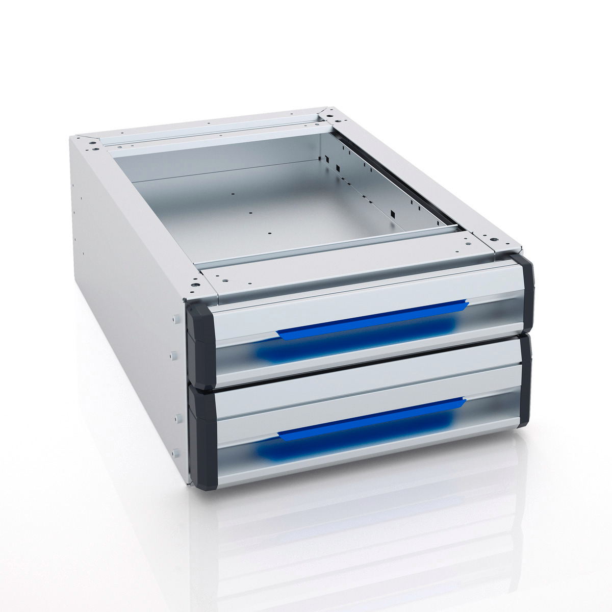 Die Jumbo-Unit ist eine robuste Großraumschublade zur sicheren Aufbewahrung schwerer Gerätschaften und unhandlicher Materialien. Sie ist bis zu 100 kg belastbar und als Unterflurlösung oder Stand-Alone-Variante einsetzbar. Erhältlich in verschiedenen Größen und Höhen, passt sie sich flexibel an individuelle Anforderungen an. Die Aluminium-Leichtbauweise sorgt für hohe Stabilität bei geringem Eigengewicht und trägt aktiv zur Reduzierung von Energie- und CO₂-Verbrauch beim Transport bei. Durch die vollständige Integration in das SR5 Regalsystem lässt sie sich optimal in bestehende Fahrzeugeinrichtungen einbinden. Die Kombination mit einer Abdeckplatte oder Abdeckwanne erweitert die Nutzungsmöglichkeiten. ProSafe Zurrpunkte ermöglichen eine sichere Ladungssicherung.(Abbildungen ähnlich, Dekomaterial nicht enthalten; Lieferung nur innerhalb Deutschlands)