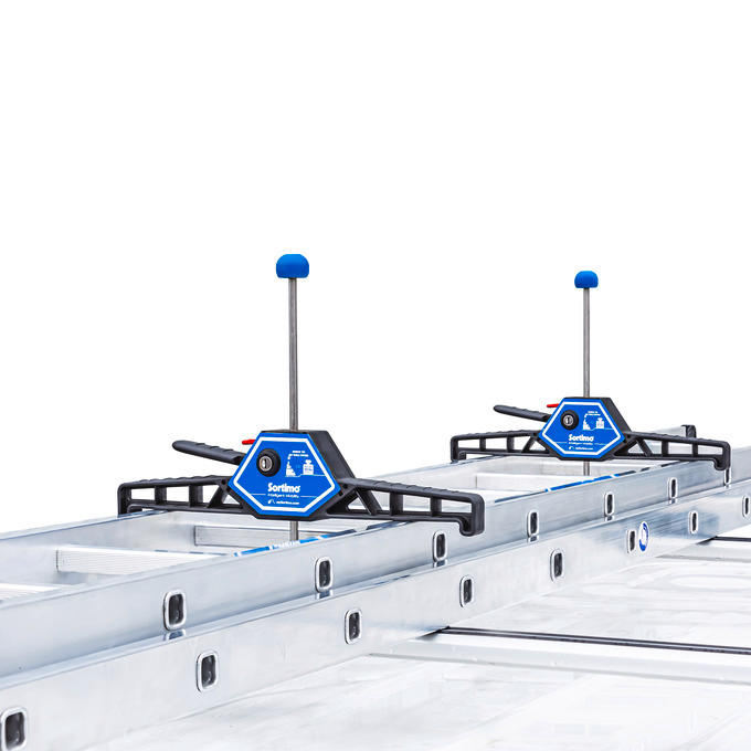 Die Leiterklemme ist universell auf dem TopSystem positionierbar. Sie dient dem schnellen Sichern und Entsichern von bis zu vier ineinanderliegenden Leitern auf dem TopSystem. Mit wenigen Handgriffen kann eine Leiter durch die Hebemechanik sehr einfach fixiert werden. Über diesen Mechanismus werden die Leitern mit einem korrosionsbeständigen Spannbügel aus Edelstahl an die Querträger gepresst und somit gesichert. Die Leiterklemme ist zudem mit einem feuchtigkeitsrestistenten Schloss versehen und schützt somit Ihre Leitern vor Diebstahl.