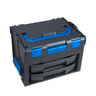Diese LS-BOXX 306 G ist mit zwei LS-Schubladen 72 G bestückt und bietet Ihnen verschiedene Verstaumöglichkeiten für einen sicheren und ordentlichen Transport Ihrer Werkzeuge, Materialien und Arbeitsutensilien an jeden Einsatzort. Sie ist die optimale Mobilitäts- und Aufbewahrungslösung für Handwerk, Industrie, Service- und Dienstleistungsunternehmen. So können Sie im oberen Bereich des Basisbehälters Werkzeuge oder Maschinen unterbringen.