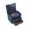 In der robusten LS-BOXX G transportieren Sie Ihre Werkzeuge, Materialien, Kundenmuster und Arbeitsutensilien sicher und ordentlich an jeden Einsatzort. Sie ist die optimale Mobilitäts- und Aufbewahrungslösung für Handwerk, Industrie, Service- und Dienstleistungsunternehmen. Durch verschiedenste Bestückungsmöglichkeiten können Sie die LS-BOXX G je nach Einsatzweck an Ihre branchenspezifischen Anforderungen anpassen. So können im oberen Bereich des Basisbehälters beispielsweise Bohrmaschinen, Stichsägen oder andere elektrische Geräte untergebracht werden. Sie können Ihre LS-BOXX G individuell mit verschiedenen Einschubmöglichkeiten bestücken, in denen sich Kleinteile bzw. Werkzeuge übersichtlich verstauen und transportieren lassen. Folgende Kombinationen sind möglich: